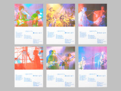 11月から26年1月にかけて全国14都市を巡る15公演の『くるりツアー25/26 ~夢のさいはて~』のツアービジュアルは、東急プラザ原宿「ハラカド」で運営されているファクトリー+プリンティングレーベル「COPY CORNER」のリソグラフプリントを用いて制作されました。過去のライブ写真を素材に使用し、複数の時間軸が交錯するような夢や記憶のフラッシュバックを想起させるデザインとなっています。また下部の文字組部分では、30周年の軌跡をひとつひとつ確かめていくようなリズムが感じられ、それが”さいはて”までずっと続いていくイメージが表現されています。カラーと質感を変えた複数のバリエーションを制作し、全15公演それぞれに異なるグラフィックが展開されます。