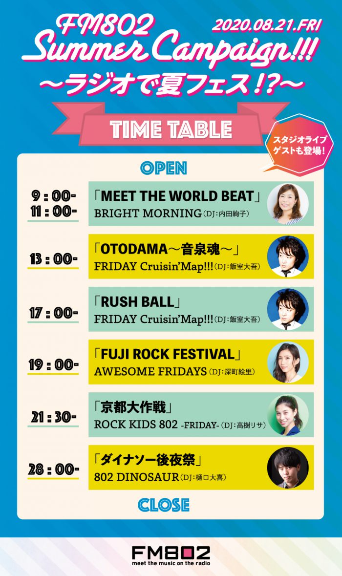 FM802「ラジオで夏フェス!?」 「MEET THE WORLD BEAT 2019」からくるりのライブ音源がオンエア。8/21(金)09:00-11:00https://funky802.com/pages/pickup_detail/6134