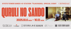 ポッドキャスト限定配信のラジオ番組『FLAG RADIO』特別プログラム『KYOTO TOWER SANDO presents QURULI’S FLAG RADIO BONUS TRACK』を京都タワーサンド館内にて一足早く放送!岸田と佐藤が、今年のオンパク出演者のみどころや、京都のおすすめポイントなど、ラジオプログラム風のスペシャルコンテンツをお届けします。また、番組スタッフがセレクトする『京都音楽博覧会2025』出演者ラインナップのスペシャルミックス音源も放送します。