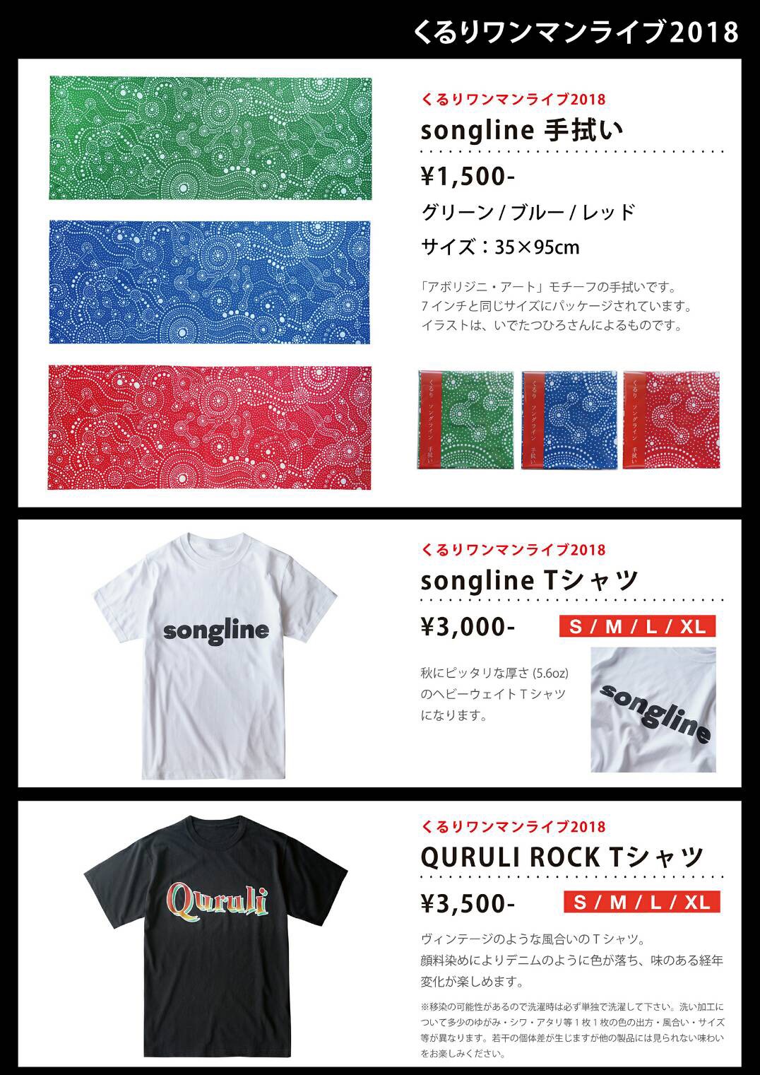 糸になる前段階の「綿」から染色する紡績会社が作るふんわりとした風合いの良い、柔らかな生地を用いたブラント「moc T」とのコラボレーションTシャツ。12枚目のオリジナルアルバム「songline」のタイトルを全面にあしらったTシャツ。着込めば着込むほどパキ綿の様なヴィンテージ感溢れる「QURULI ROCK Tシャツ」。アボリジニアートをモチーフにした「songline手拭い」ほか、今回もオリジナリティーに溢れたアイテムをご用意しました。