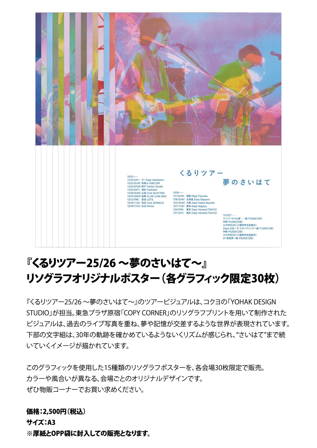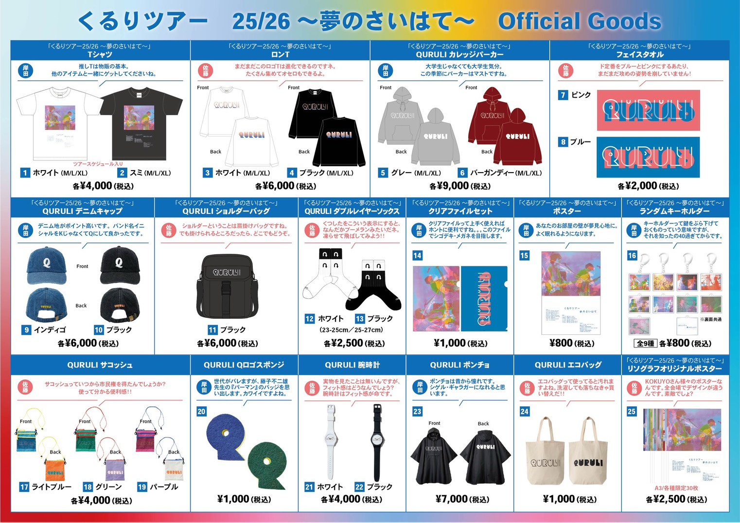 今週土曜日よりスタートする「くるりツアー25/26 ~夢のさいはて~」に向けて、オフィシャルグッズのラインアップが公開されました。