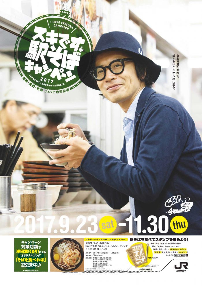 JR東日本高崎・長野・新潟支社では、2017 年 11 月 1 日(水)から 11 月 30 日(木)までの間、現在開催している「スキです。駅そばキャンペーン 2017」の期間限定企画として、昨年好評だった岸田繁(くるり)作詞作曲による「そばを食べれば」をCDに初収録します。上信越エリアの駅そば店6店舗の券売機でのみ、期間限定、数量限定の特別メニューとして500円(税込)販売します。